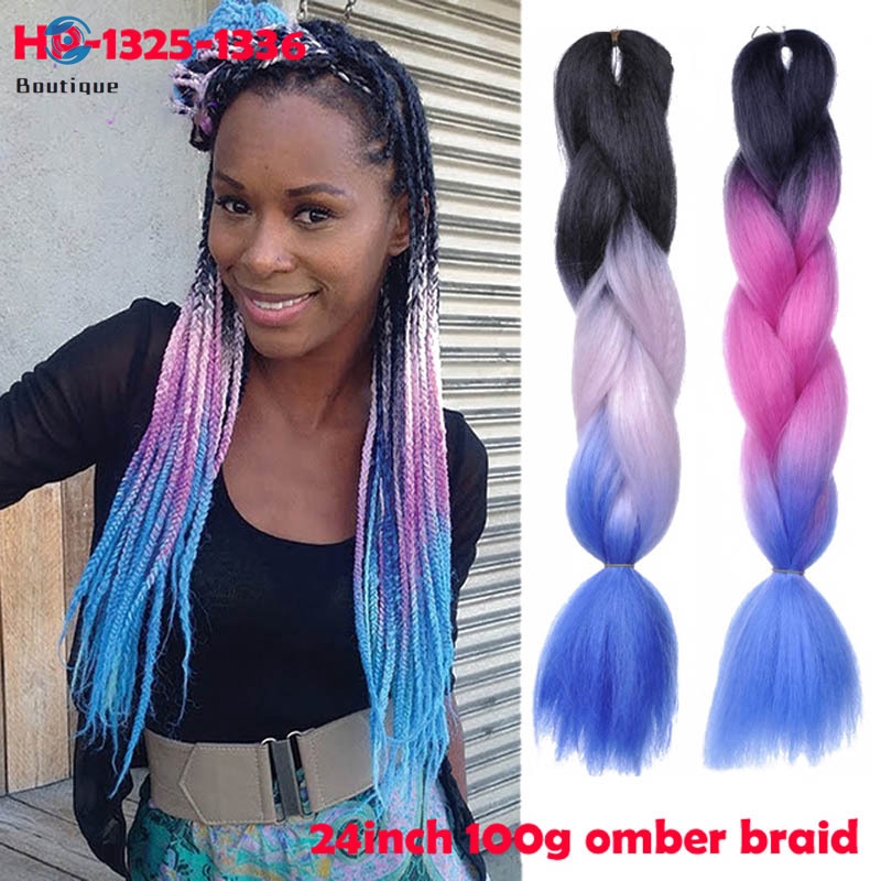Rainbow Highlight Twist Box Braids Kanekalon Jumbo Braid Hair