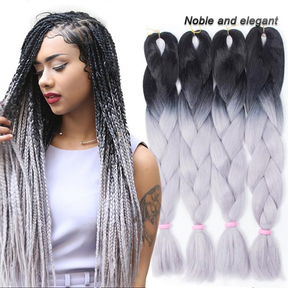 Black Grey Ombre Jumbo Braid Hair Dip Dye Extensions 30 Etsy